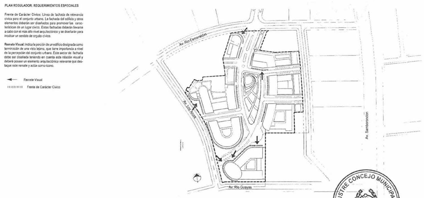 ARTÍCULO 5.- PLAN REGULADOR: REQUERIMIENTOS ESPECIALES..- Frente de Carácter Cívico.- Linea de fachada de relevancia cívica para el conjunto urbano. La fachada del edificio y otros elementos deberán ser diseñados para promover las caracteristicas de un lugar cívico. Estas fachadas deberán llevarse a cabo con el más alto nivel arquitectónico y se diseñarán para inculcar un sentido de orgullo cívico.
