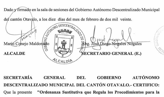 Ordenanza Municipal Cantón Otavalo: Sustitutiva que regula los procedimientos para la incorporación de bienes muebles vacantes o mostrencos al patrimonio municipal, titularización administrativa de predios en favor de sus posesionarios;, adjudicacione