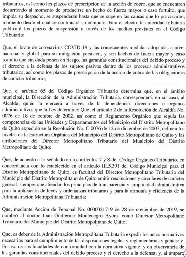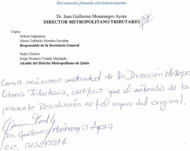 EL DIRECTOR METROPOLITANO TRIBUTARIO DEL MUNICIPIO DEL DISTRITO METROPOLITANO DE QUITO