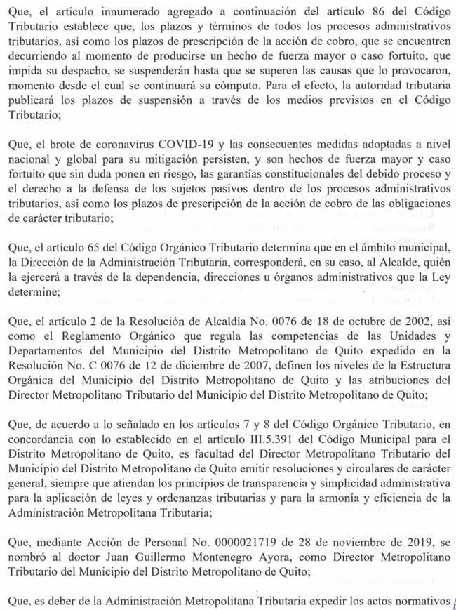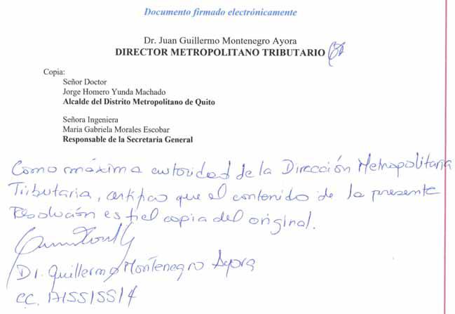 EL DIRECTOR METROPOLITANO TRIBUTARIO DEL MUNICIPIO DEL DISTRITO METROPOLITANO DE QUITO