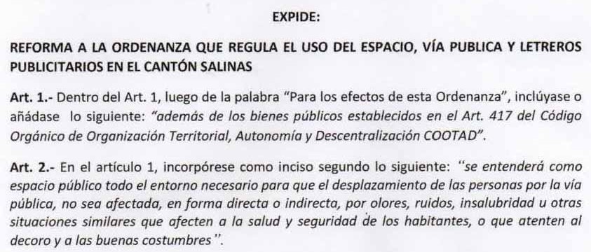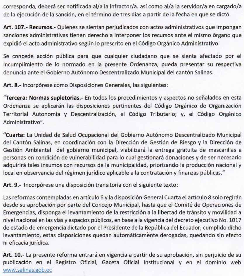 Gobierno Autónomo Descentralizado Municipal del Cantón Salinas Edición Especial 562 (2020) 11 de Mayo de 2020 EL GOBIERNO AUTPONOMO DESCENTRALIZADO DEL CANTÓN SALINAS Considerando Firmas Viernes 17 de Abril de 2020 Oswaldo Daniel Cisneros SoriaAlcalde del GAD Municipal del Cantón SalinasPrincipal Fabián Antonio Zamora CedeñoSecretario General del GAD Municipal del Cantón SalinasPrincipal Inicie sesión o regístrese para comentar